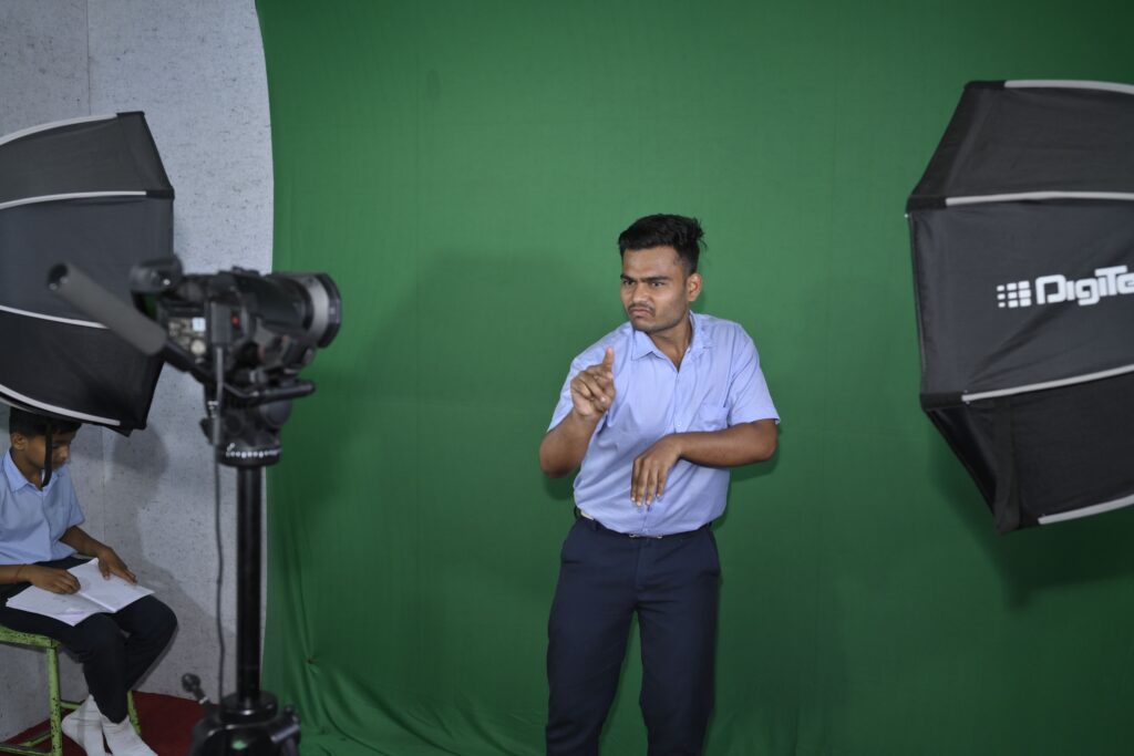 Deaf students at AVV take an active role in developing simplified video lessons aligned with the Rajasthan Board of Secondary Education (RBSE) curriculum. These visual resources make classroom learning more accessible, inclusive, and student-centered. The lab also fosters digital literacy, peer collaboration, and a sense of ownership over their education.